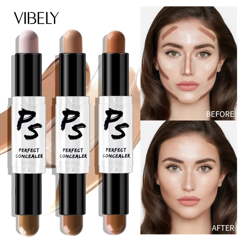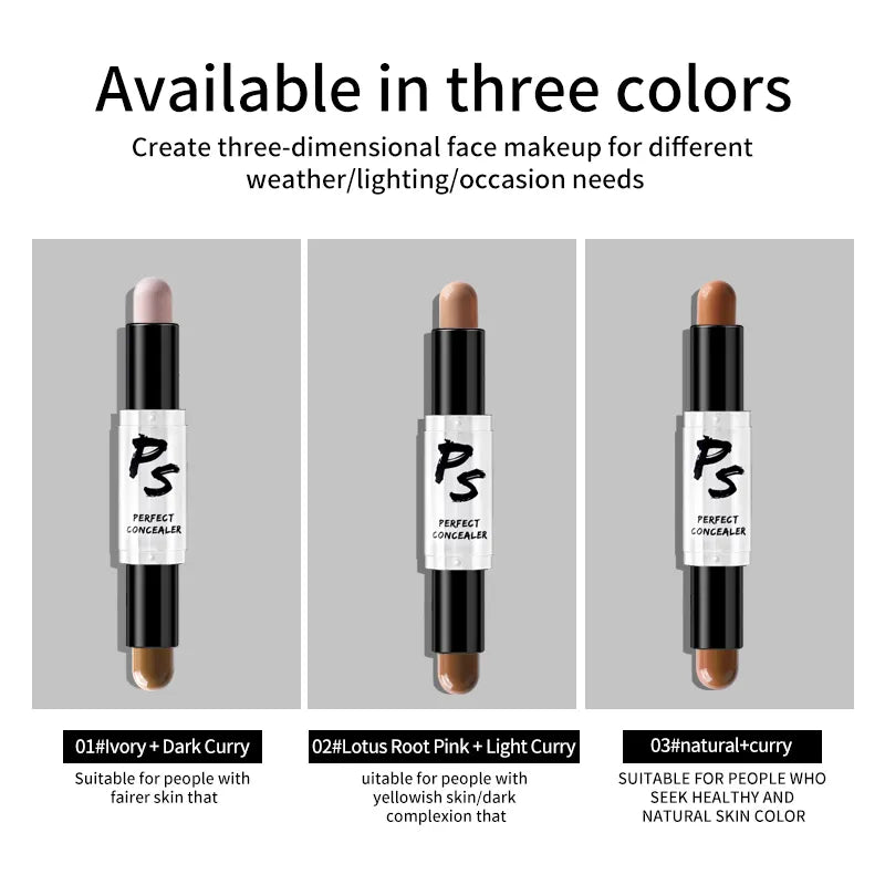 Maquillaje facial Resaltador de doble cabeza Corrector , disponible en 3 colores